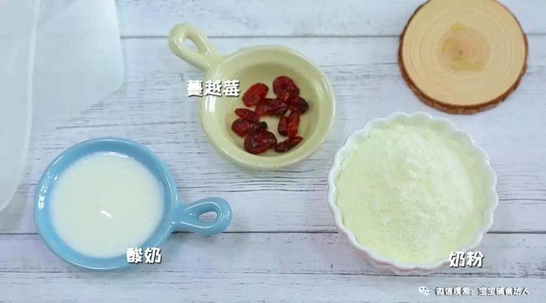 食材准备:奶粉60克、酸奶35克、蔓越莓8克